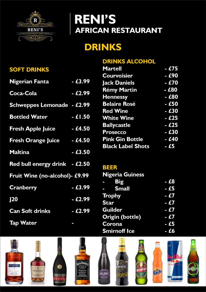 At Reni’s Lounge, we offer varieties of Authentic African & European Drinks.